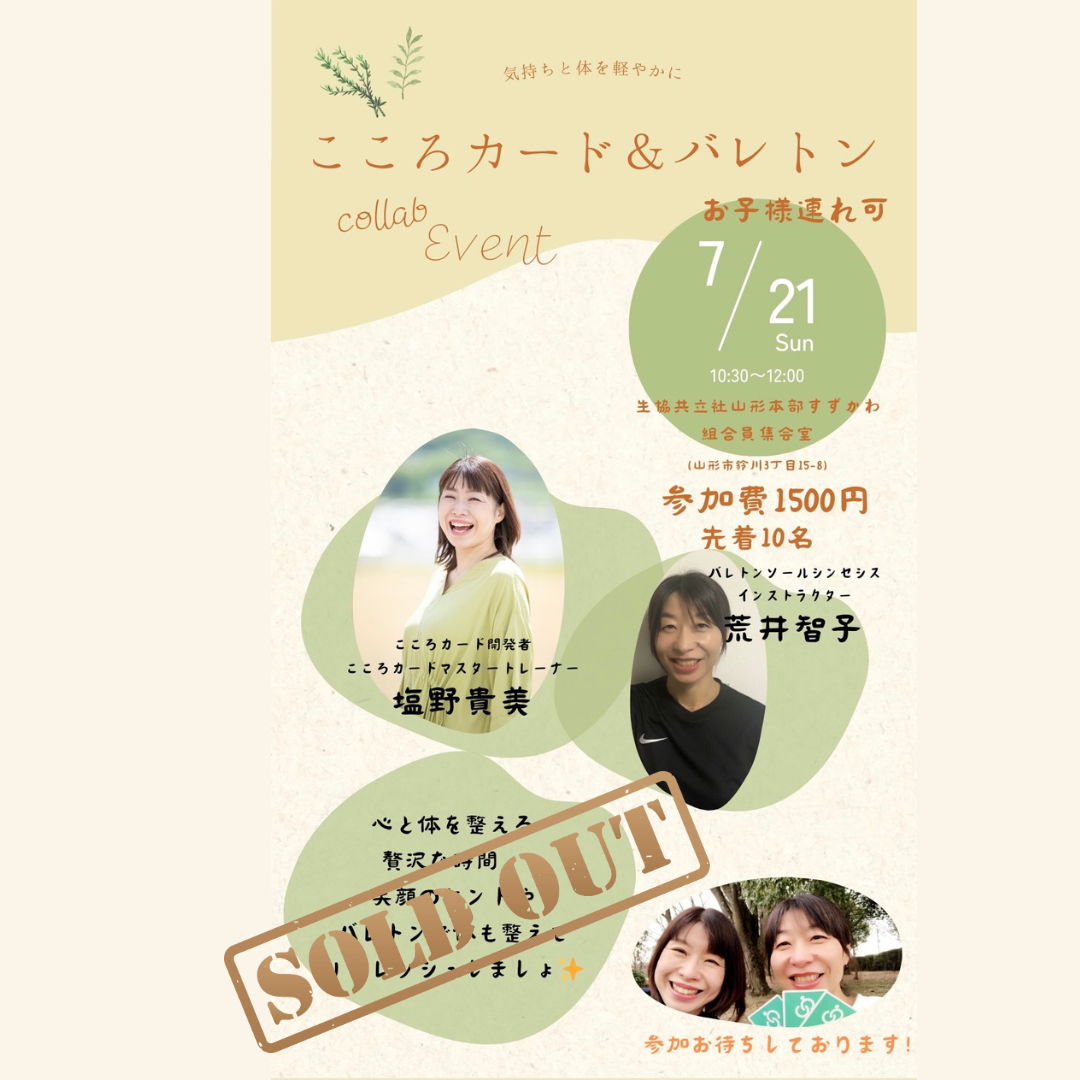 7月21日(日)に開催される【第4回 気持ちと体を軽やかに〜こころカード×バレトン〜】は、お陰様で満席になりました。