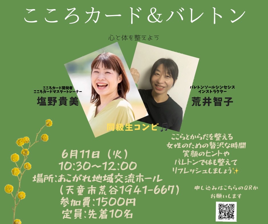 今回、同級生とバレトンとこころカードのコラボ講座を企画しました。