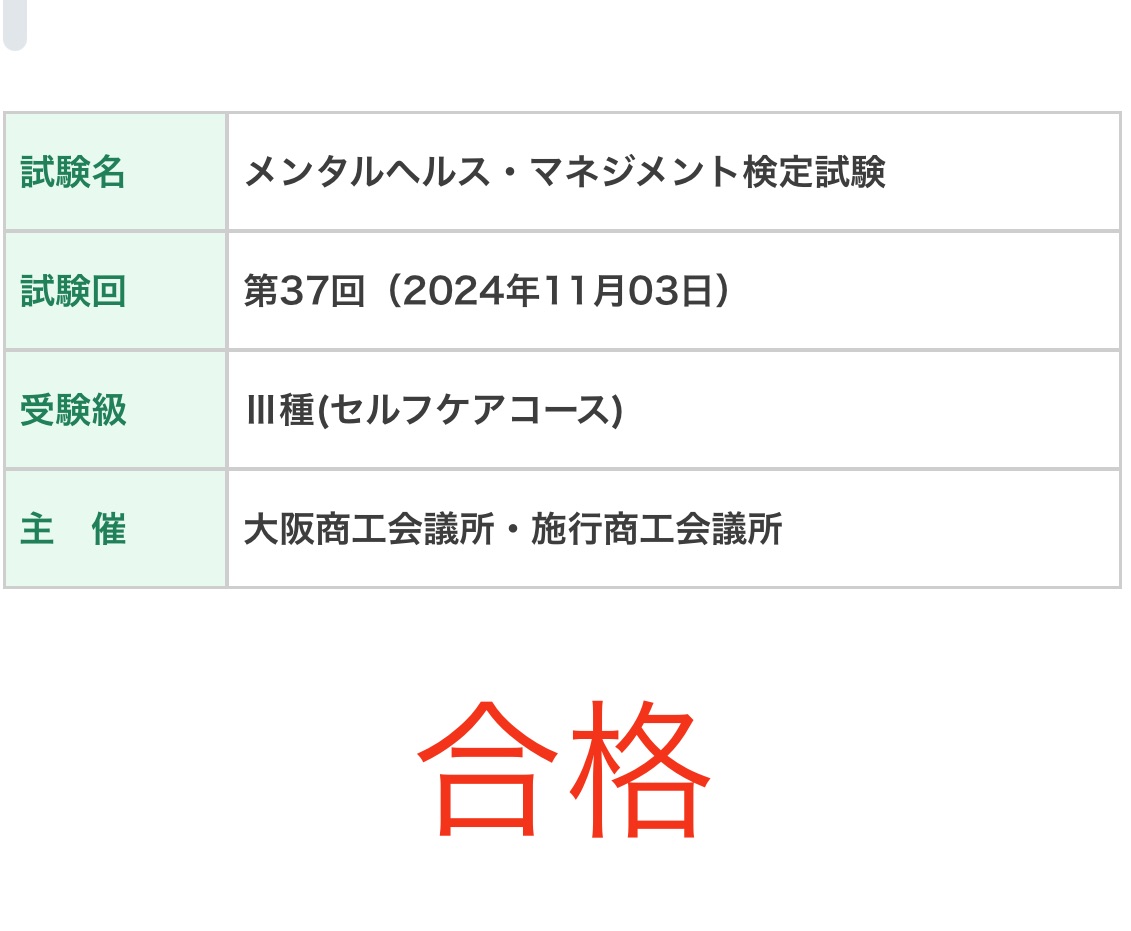 今回、セルフケアコースが合格できたので