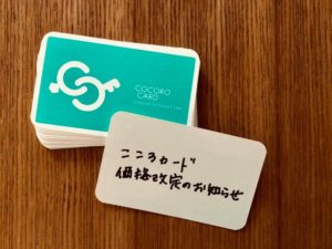 コーチング・メンタルヘルス研修PresentTimeの塩野貴美です。この前、いいことを教えてもらいました。こころカードをご購入いただいた本木さん…