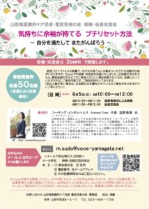 働く女性の気持ちを前向きに変える専門家塩野貴美です。山形県医療的ケア児者・重症児者様主催で「気持ちに余裕が持てるプチリセット方法〜自分を満たし…