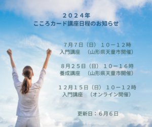 こんにちは。「心を笑顔にする専門家」塩野貴美です。 「こころカード入門講座」と「こころカード・インストラクター養成講座」の追加開催…